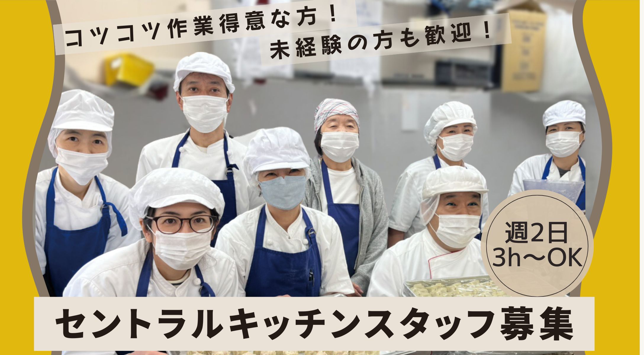 今回は、二子玉川エリアのセントラルキッチン・店舗での調理補助スタッフを募集します。駅から徒歩で通勤できますので、地域の皆様からのたくさんの応募をお待ちしています。